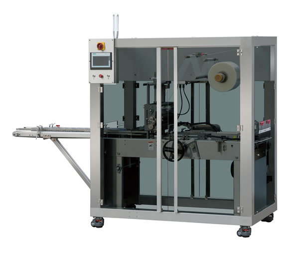 本機適用于各行業中的單件盒式物品的薄膜自動包裝(帶金拉線)。本機整體機架采用碳鋼噴塑、落地多開安全門結構,采用平推式推盒結構,更換模具簡單,調節距離多處采用手搖式調節尺寸,大大節省換模具時間,固定膜處采用氣漲軸輥固定,使換膜更簡單、快速。