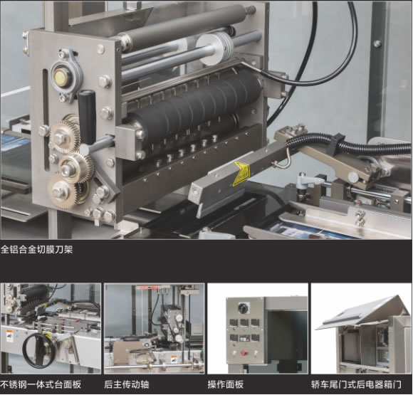 3.本機采用全鋁合金切膜刀架、單旋轉切膜刀,切膜精確、平整,大小產品無需更換切膜機構。