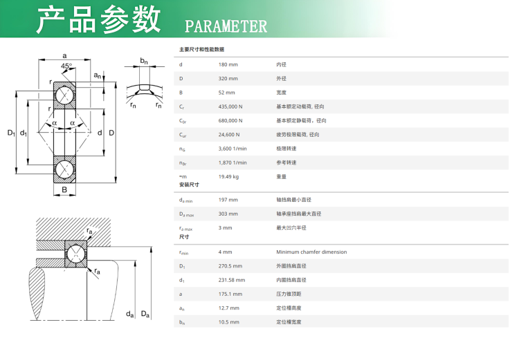 B寬度(mm): 52 FAG四點角接觸球軸承 產品特征 1、改善了滾道表面 2、35°接觸角 3、有塑料保持架和通保持架 4、使用剖分式內圈加鋼球數 5、實體外圈