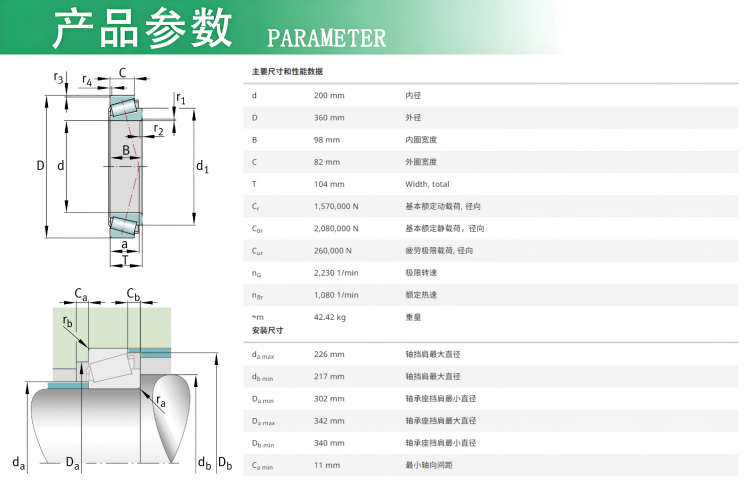 安徽捷越倉庫發貨實拍 32240-XL軸承數據 d內徑(mm): 200 D外徑(mm): 360 B寬度(mm): 104