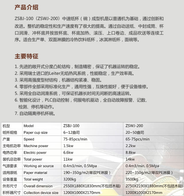 ZSBJ-100/ZSWJ-200中速紙杯(碗)成型機中速紙杯(碗)成型機 簡介 :