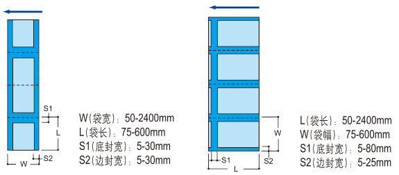 制袋尺寸和流向(對(duì)應(yīng)ZD-SDL600):