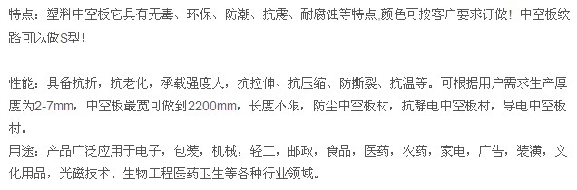 主營:PP中空板;塑料瓦楞板;萬通板;塑料中空板;周轉(zhuǎn)箱