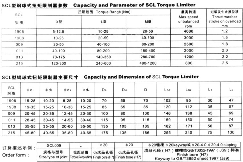 SCL型鋼球式扭力限制器型聯軸器