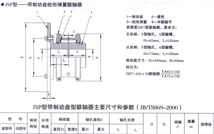 JSZ帶制動輪型蛇形彈簧聯軸器