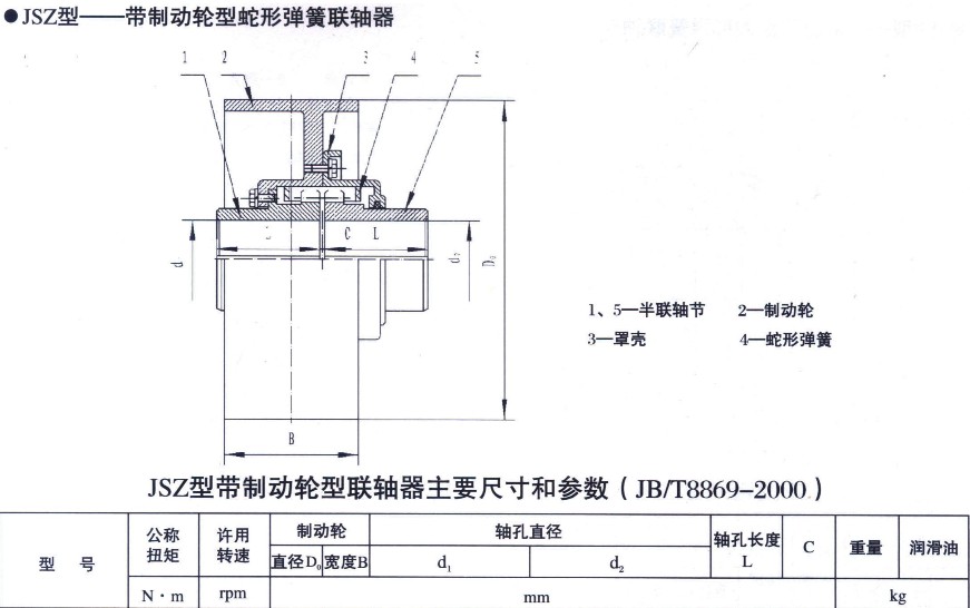 JSZ帶制動輪型蛇形彈簧聯(lián)軸器