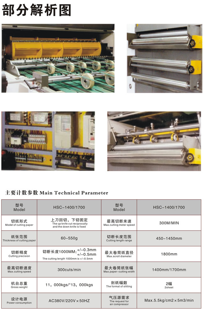 HYC卷筒切紙機采用臺灣及英國的先進技術,AC伺服馬達傳動,切紙速度快切穩定;德國精密軸承及切斷刀,切斷精度高;輕觸式電腦界面控制,操作簡便,構造合理的反曲架,保證紙張的平坦,是目前造紙業及印刷業中普遍采用的紙品加工機械,將為您的公司成倍提高效率 ,增加收益!